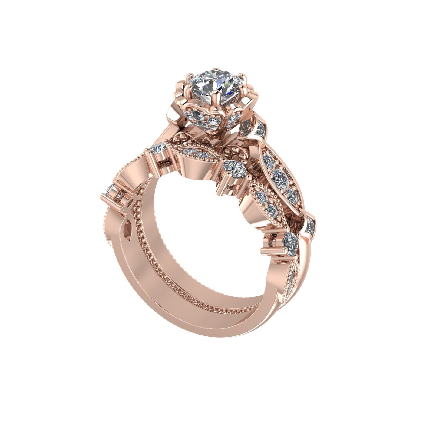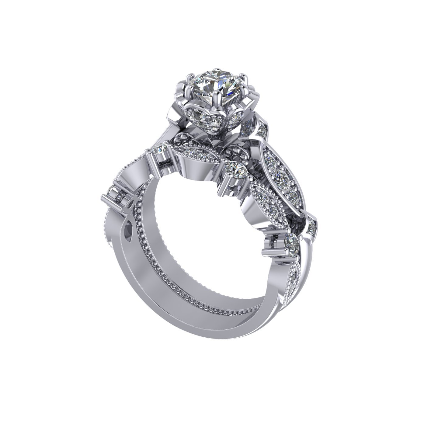 Intricately Filigree Designed Engagement Ring with Diamonds